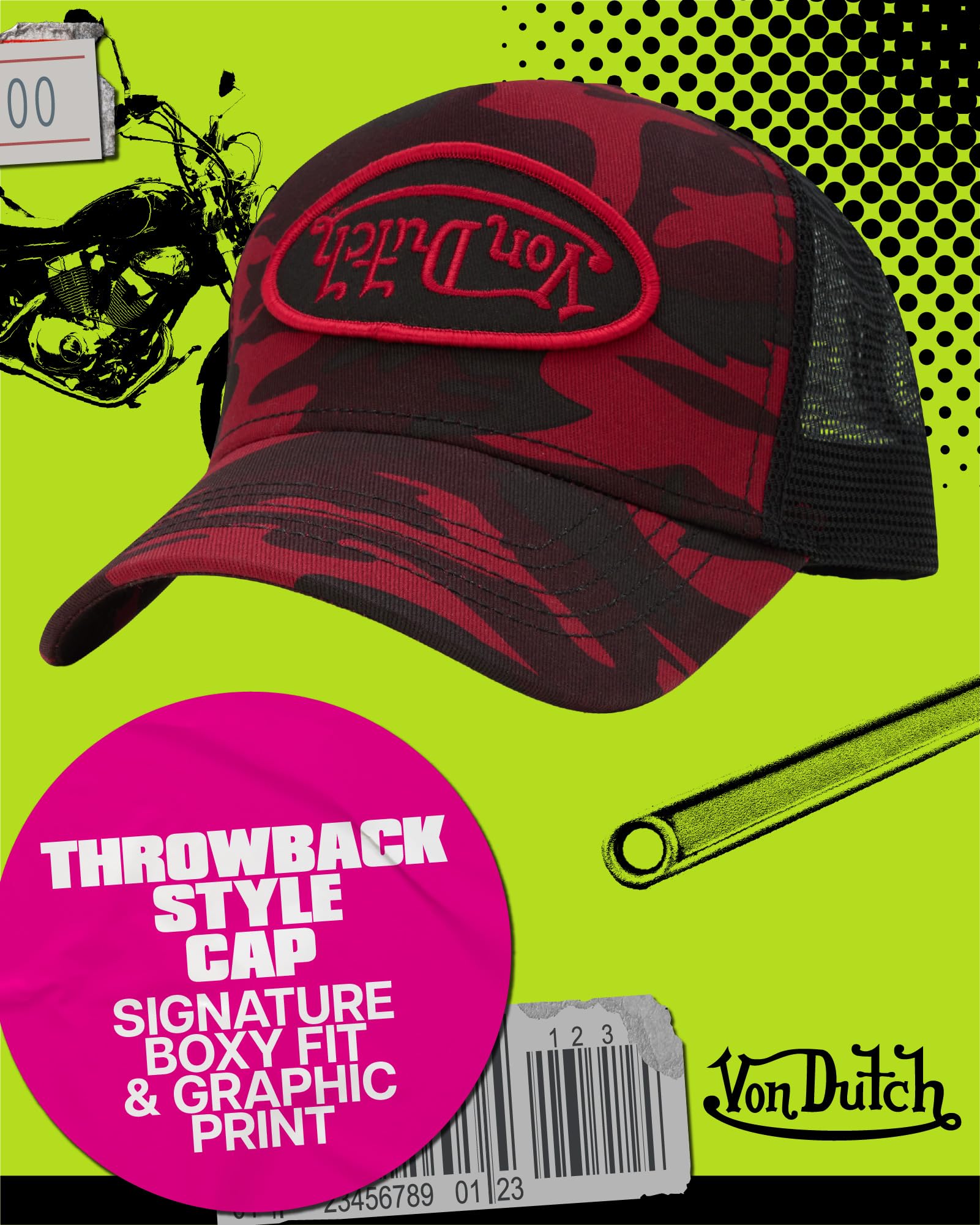 - Iconic Throwback Design: Make a statement with this bold Von Dutch graphic trucker cap featuring a multicolor all-over camo print and signature embroidered patch. This standout baseball hat embodies vintage edge with modern flair, perfect for fans of baseball hats for men, womens trucker hats trendy, and retro-inspired streetwear staples.